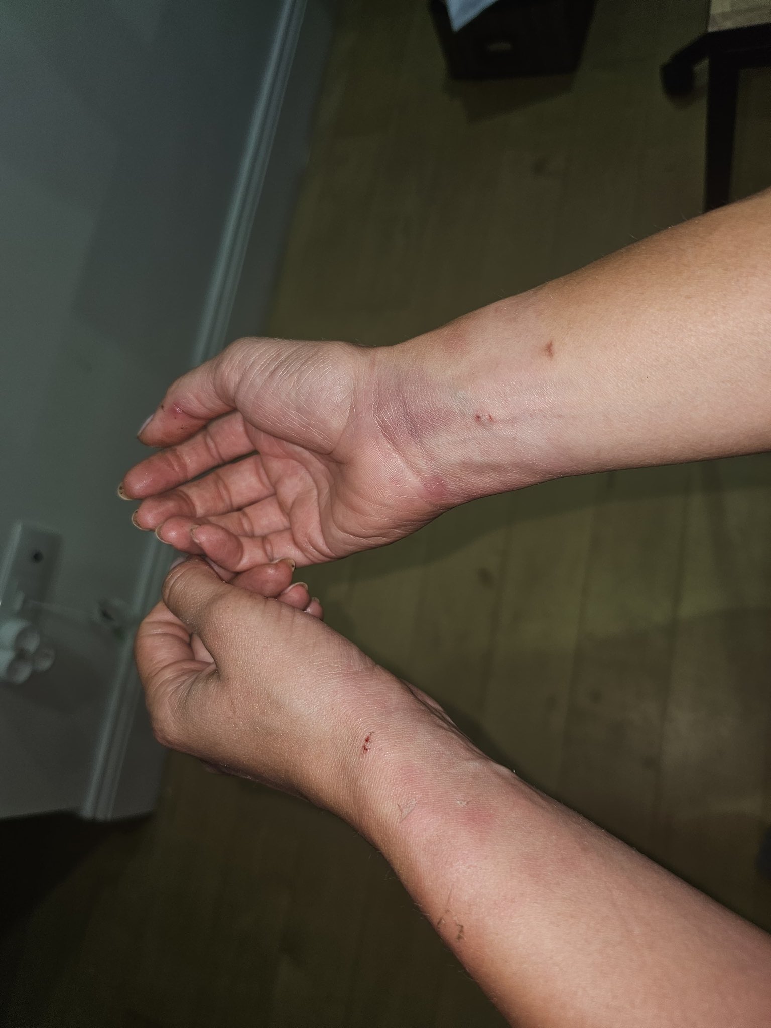 Hakkımızda bir tutuklama emri, gözaltı kararı, evimizi arama izni vs yoktu. Sadece gürültü ihbarı vardı. Sözde asayişi sağlamak için evimize gelen polisten evimizin içinde sebepsiz yere böyle bir şiddet gördük. Polise hakaret etmedik, fiziksel bir temasta bulunmadık.