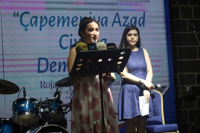 Program yaşamını yitiren Özgür Basın şehitleri anısına saygı duruşuyla başladı. Burada ilk olarak konuşan MKG Başkanı Roza Metina, sözlerine hakikat yolunda yaşamını yitiren gazetecileri anarak başladı. Roza Metina, “Onlar bize büyük bir miras bıraktı. O yüzden biz gücümüzü özgür basından, onların bıraktığı mirastan alıyoruz. O yüzden bugünü onlara adıyoruz” dedi.